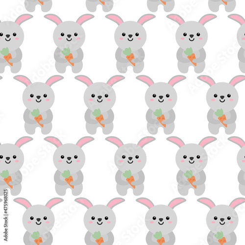 © whitecityrecords, Naklejka premium Cute rabbit with carrot Pattern. Cartoon animal background for kids, textile, pattern fabric, wallpaper.