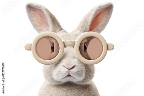 Obraz premium Cute rabbit with round glasses on a white background, cut out