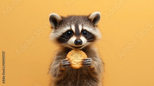 Fototapeta premium Cute Raccoon Eating a Cookie