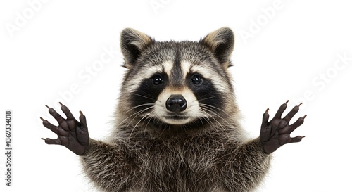 Obraz premium Cute Raccoon Portrait with Paws Up on White Background Studio Shot