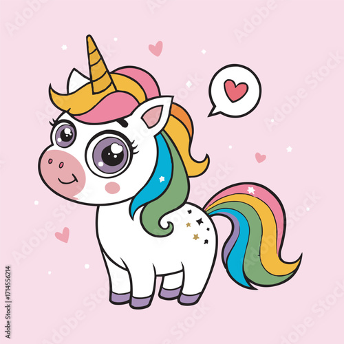 Naklejka premium Cute Rainbow Unicorn Vector Illustration with Heart