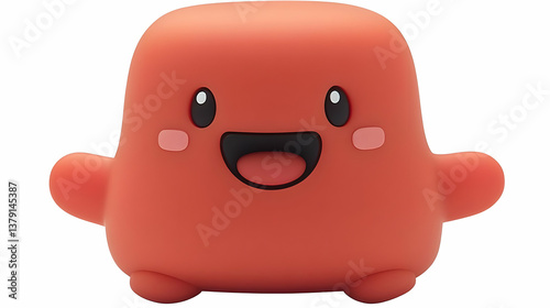 © kacadesain, Obraz premium Cute Red Cartoon Character Smiling with Rosy Cheeks on a Clean White Background with Simple Design and Friendly Expression