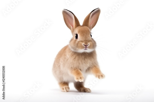 © Neira, Fototapeta premium Cute red easter bunny jumping isolated on white background.