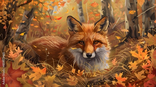 © Berkah, Fototapeta premium Cute Red Fox, Vulpes vulpes, fall forest. Beautiful animal in the nature habitat. Orange fox, detail portrait, Czech. Wildlife scene from the wild nature. Red fox running in orange autumn leaves.