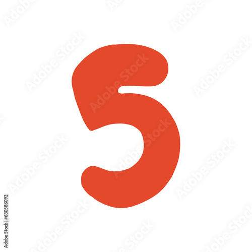 © Chawal, Fototapeta premium Cute red hand drawn alphabet number 5
