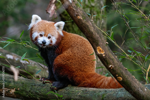 © erikzunec, Naklejka premium Cute red panda eating bamboo
