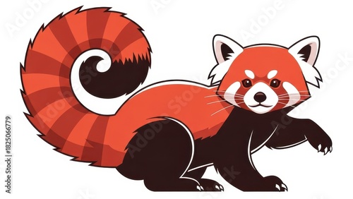 Fototapeta premium Cute Red Panda Illustration with Fluffy Tail and White Markings.
