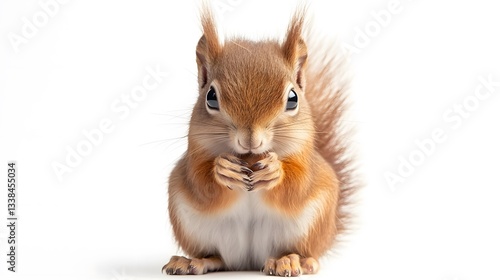 © HISTOCK, Obraz premium Cute red squirrel eating nut on white background