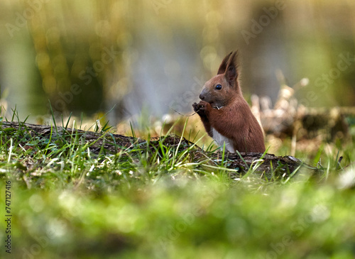 © Xalanx, Fototapeta premium Cute red squirrel in the grass