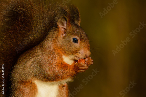 © Kerstin Cotrus, Obraz premium Cute red squirrel with hazelnut