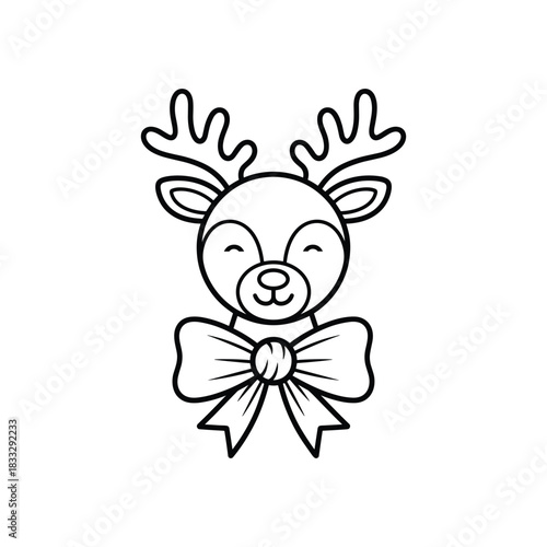© ITRAKIBUL, Naklejka premium Cute Reindeer Face With Bow Art