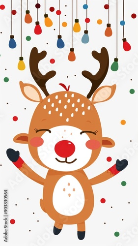 Naklejka premium Cute Reindeer with christmas festive lights antlers, a simple flat vector...