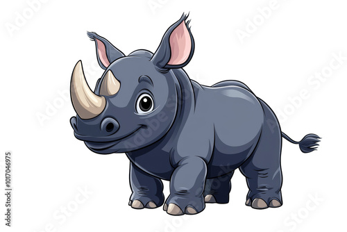 © Bojan, Obraz premium Cute Rhino Cartoon Illustration on Transparent Background