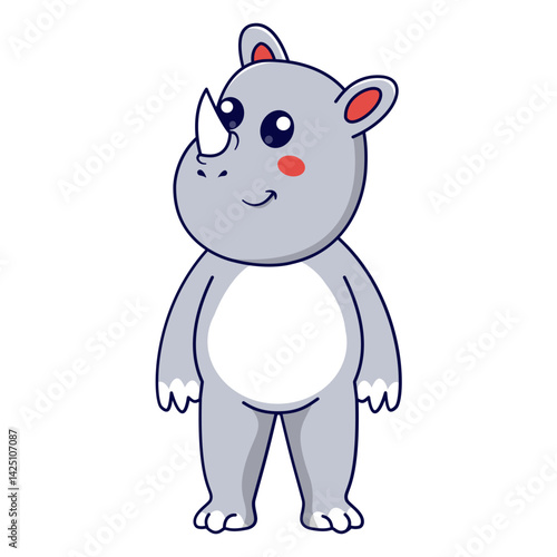 Naklejka premium Cute Rhino Character. Vector Illustration in Cartoon Design.