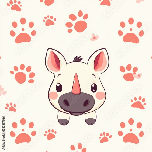 Obraz premium Cute rhinoceros face and paw print seamless pattern digital design playful environment whimsical viewpoint