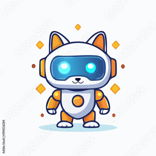 Obraz premium Cute Robot Cat Character Illustration.