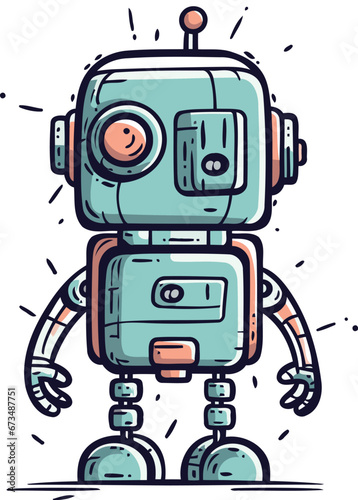 © Ehtisham, Fototapeta premium Cute robot hand drawn vector illustration. Cartoon style. Isolated on white background.