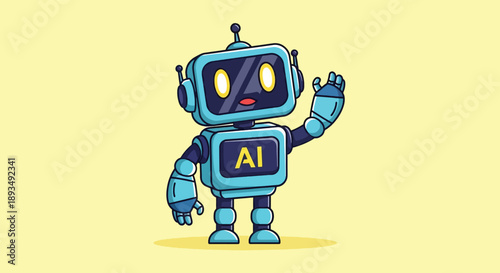 Fototapeta premium Cute Robot Waving Hello with AI Display.