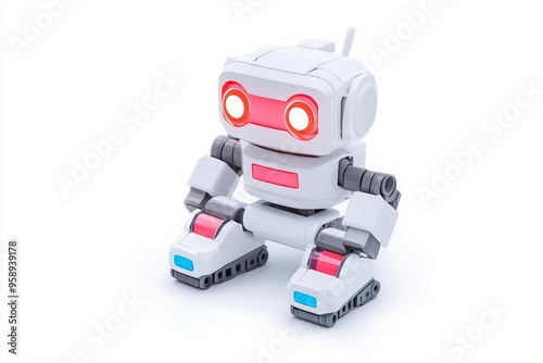 © Najikung, Obraz premium Cute robotic toy with bright eyes, perfect for tech-themed projects and children's educational materials.