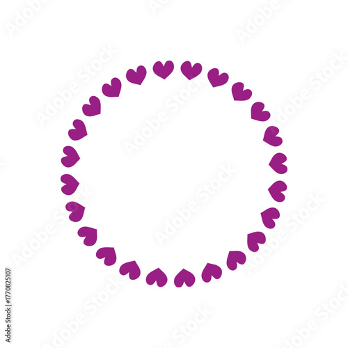 © Minur, Obraz premium Cute round wreath with purple hearts isolated on white background.