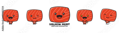 © yoongart, Fototapeta premium cute salmon meat mascot, food cartoon illustration, with different facial expressions and poses