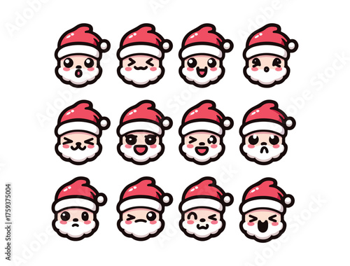 Fototapeta premium Cute Santa Claus Character Icon Set – Chibi Christmas Vector Pack