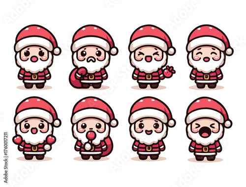 Fototapeta premium Cute Santa Claus Character Icon Set – Chibi Christmas Vector Pack