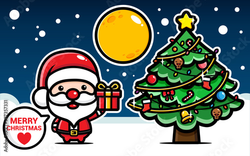 Fototapeta premium Cute Santa Claus characters and Christmas tree on Christmas day