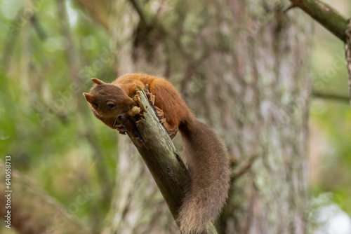 Obraz premium Cute scottish red squirrel with nut in the woodland