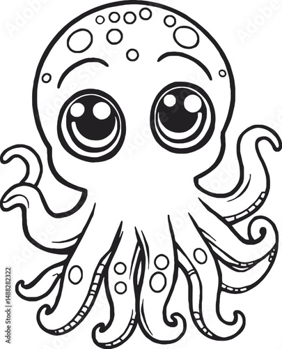 Obraz premium Cute Sea Octopus Outline and Art Line Coloring Page