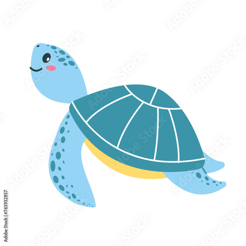 © lovaisme, Naklejka premium Cute sea turtle on a white background. Marine animals, ocean fish. Vector