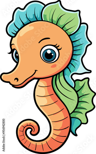 © Anchalee, Fototapeta premium Cute seahorse cartoon character illustration png, colorful sea animal clipart for ocean life, aquatic, children book, kids, activity book, baby shower, sticker, anime, nature, drawing, aquarium, art