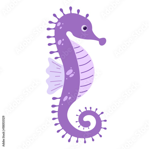 © Natalie, Fototapeta premium Cute seahorse for children background. Under the sea, water animal character, ocean fauna. Flat vector design.