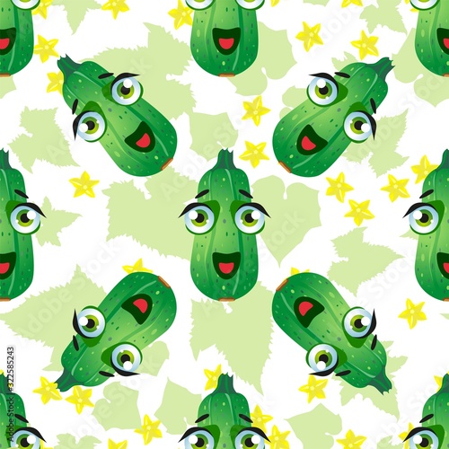 © Andreichenko, Fototapeta premium Cute seamless pattern with cartoon emoji vegetables