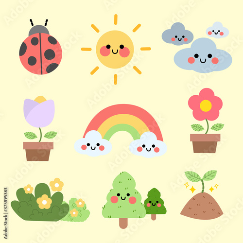 Obraz premium Cute Season Summer Spring Character Illustration Set