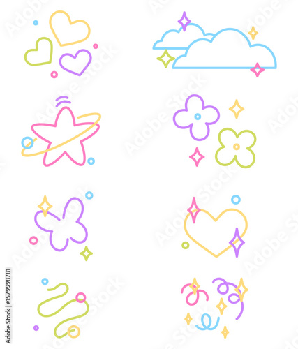 © DimsArt, Fototapeta premium Cute set colorful line sticker journal scrapbook illustration