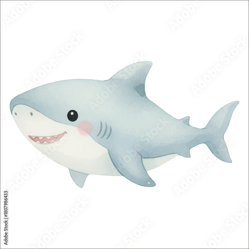 © Mae, Fototapeta premium Cute Shark Watercolor Vector Isolated on White Background