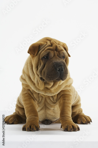 © MDBPIXS, Obraz premium Cute Sharpei sitting against white background