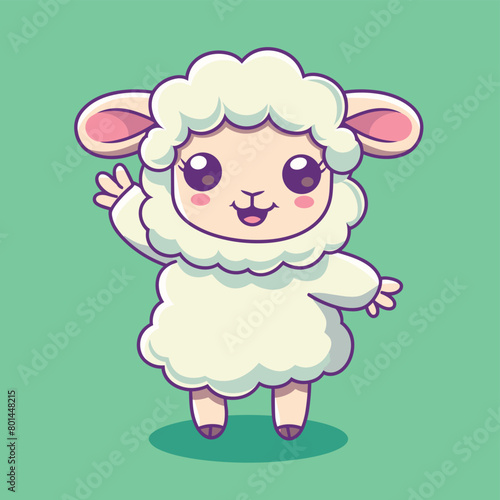 © umut hasanoglu, Fototapeta premium Cute sheep cartoon character waving hand flat vector graphics