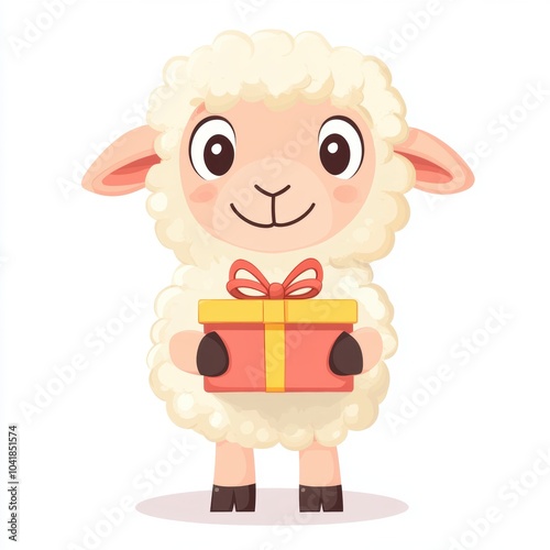 © Joyce, Fototapeta premium Cute sheep holding a gift box isolated over white background.