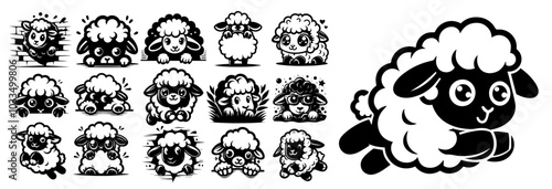 Obraz premium cute sheep illustrations set in cartoon style black vector