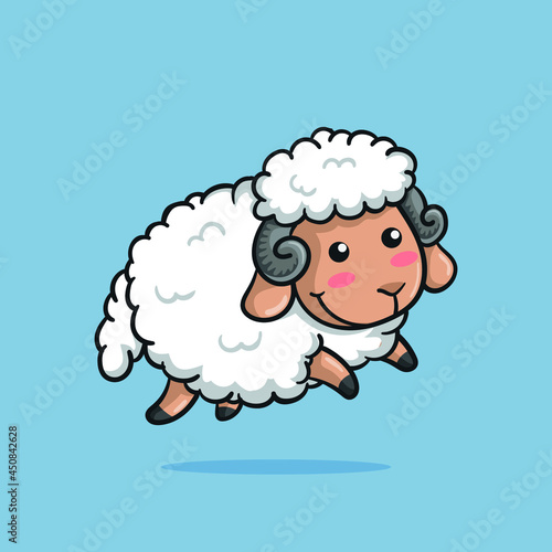 Obraz premium cute sheep jumping with happy smile, cartoon illustration style