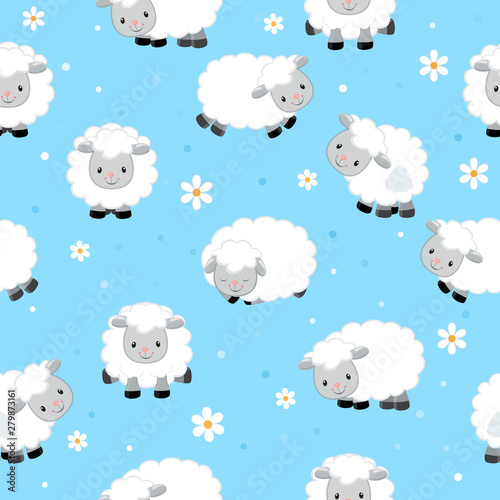 © Zhanna Bard, Fototapeta premium Cute sheep seamless pattern. Vector background for kids