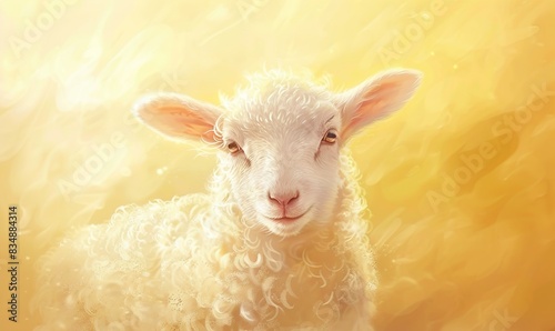 © Puji, Fototapeta premium Cute sheep vector with beautiful thick smooth white fur ai generated