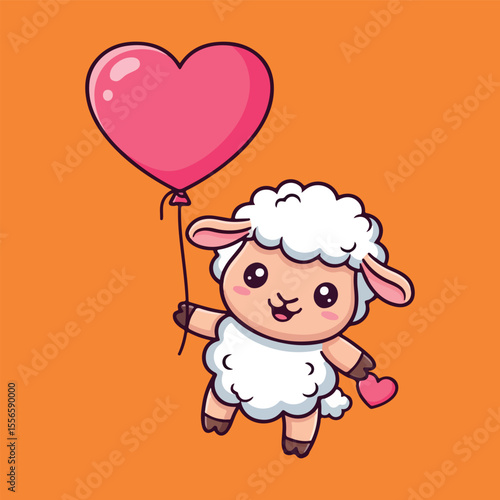 Obraz premium Cute Sheep with Heart Balloon. Sweet Love Concept.