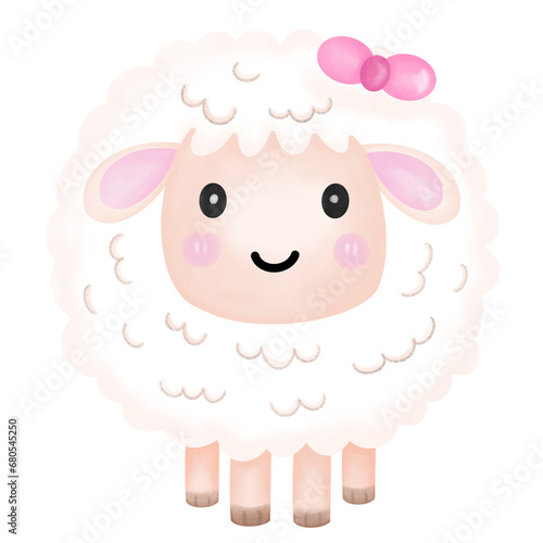 © Ketsara, Fototapeta premium cute sheep with pink ribbon
