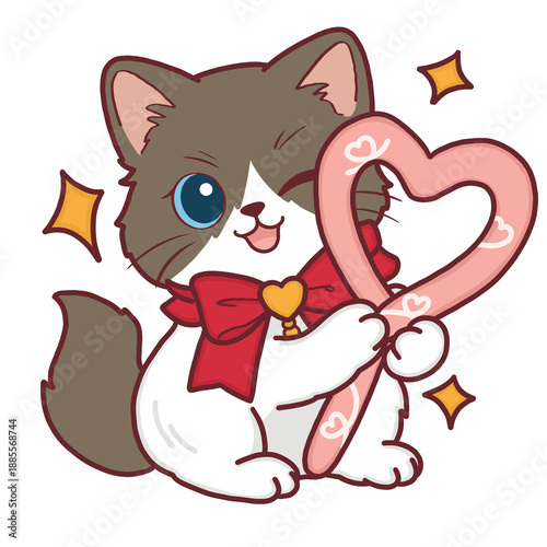 Obraz premium Cute Siamese Ragdoll cat holding a large heart shaped balloon decoration