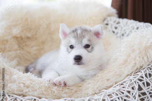 Fototapeta premium cute siberian husky puppy sleep on rattan chair