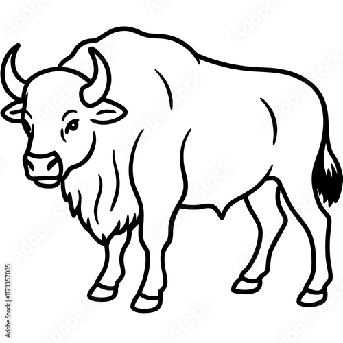 Fototapeta premium Cute Silhouette of a Bison line art vector cartoon illustration