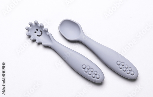 © splitov27, Obraz premium Cute silicone spoons for feeding little baby on white background